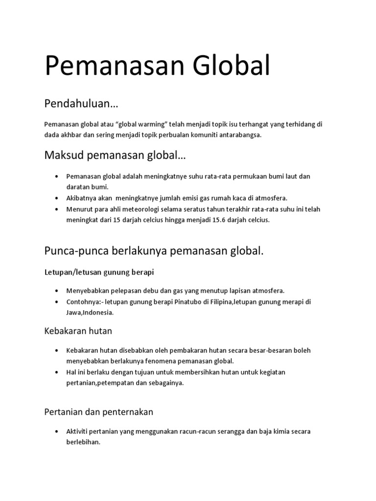 Maksud Dan Punca Pemanasan Global Worksheet